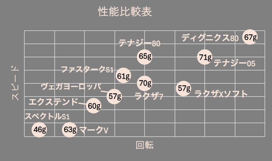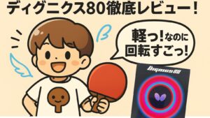 ディグニクス80ってあまり話題にならないんですが、個人的にはかなり穴場のラバーだと思ってます。ディグ05や09Cに比べると、軽量なうえ、クセがなくてバランスが良いラバーです。
