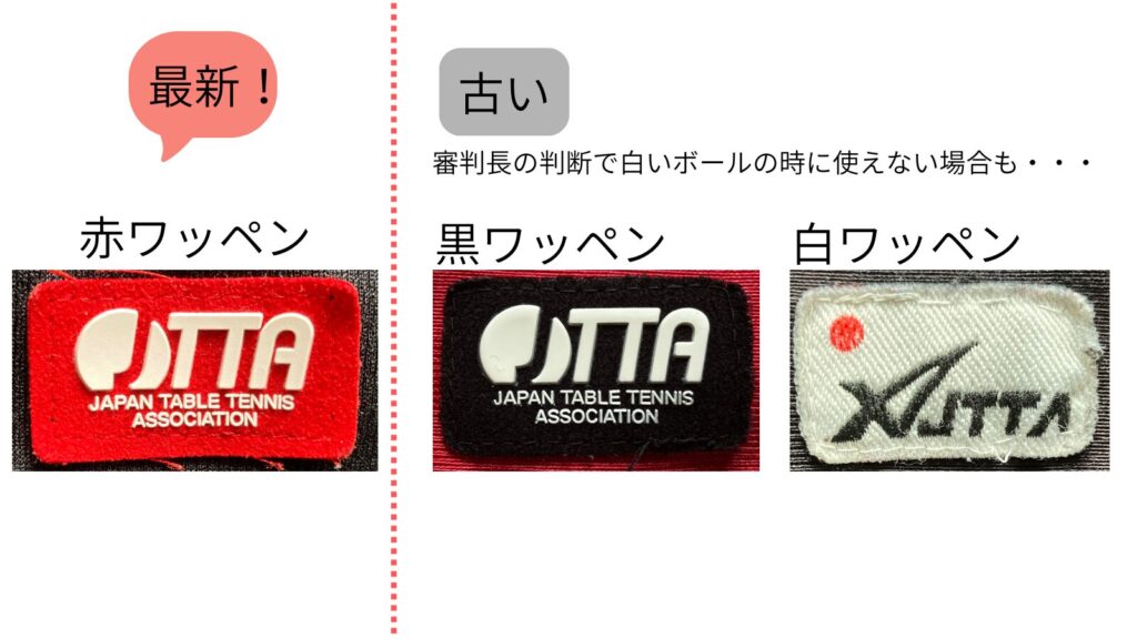 日本卓球協会(JTTA)が主催する大会――たとえば 全日本選手権の予選、全日本社会人選手権の予選、クラブ選手権の予選 などでは、JTTAマーク(公認ワッペン)付きのユニフォームを着用する必要があります。