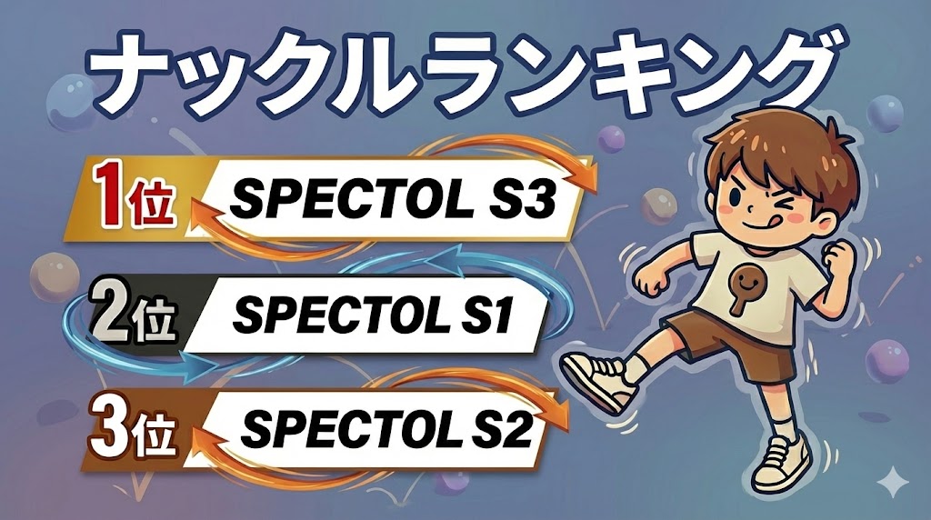 - 「迷ったらコレ!変化と安定の王道」 → スペクトルS1(バック表、カットマン、表ソフト初心者におすすめ)