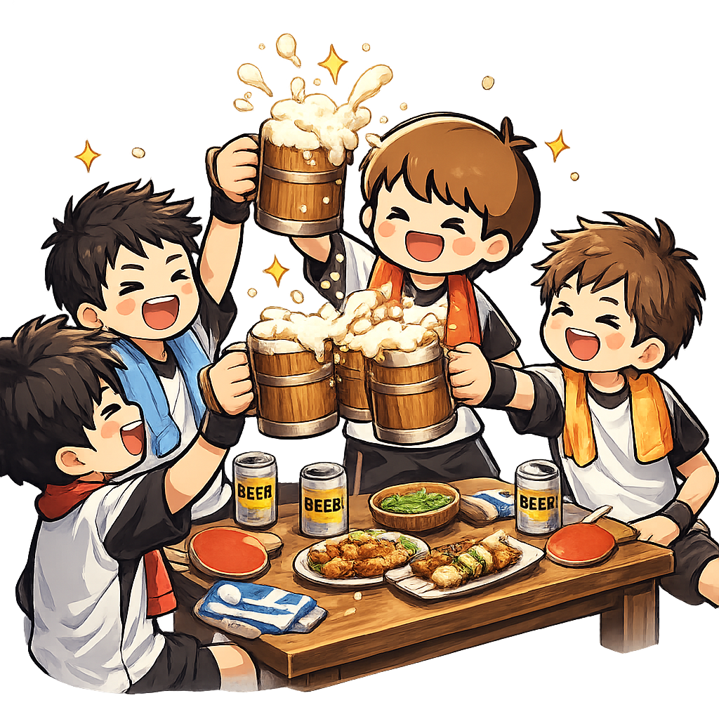 - 勝利(あるいは反省)の美酒で泥酔し、帰宅後に即沈没