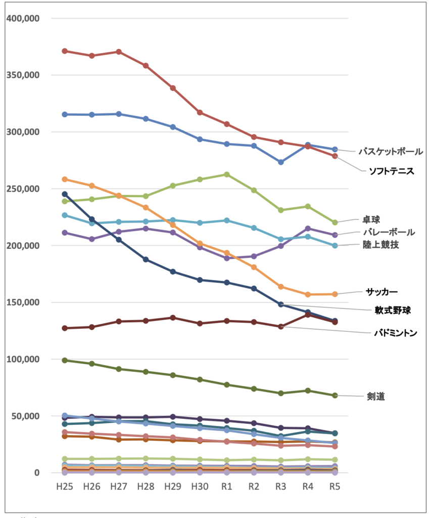 (参照:(公財)日本中学校体育連盟「加盟校・加盟生徒数調査」の調査結果)