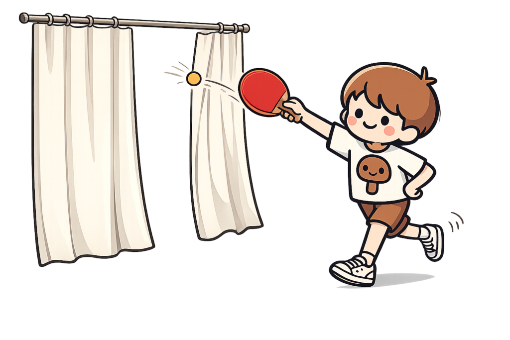 新しいサーブを覚えたての時期は、コントロールは二の次です。 とにかく「回転をかける感覚」を叩き込むために、量をこなすしかありません。 卓球台がなくても、床やカーテンに向かって思い切り回転をかける練習を繰り返しましょう。